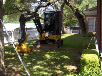 In the process of a drainage repair, Brazos Landscapers employs specialized equipment that constantly reads the rotating laser to accurately establish the correct positive slope for your property. This equipment allows Brazos Landscapers to precisely remove the obstruction(s) that inhibit the storm water from leaving your property.